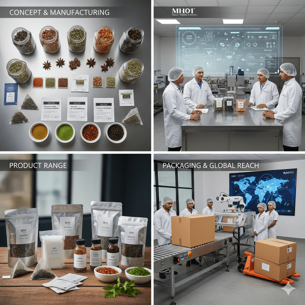 At MH01 Tea & Trading Company, we turn your vision for herbal & ayurvedic teas, kitchen herbs, and seasoningsinto market-ready products.